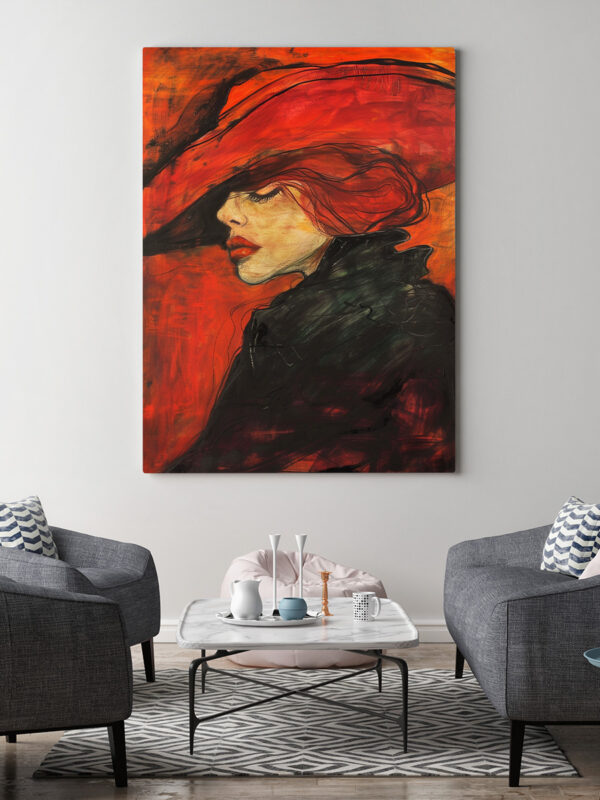 Entdecke den Zauber von Farbe und Emotion mit unserem Kunstdruck ‘Crimson Mystery’. Lass dich von diesem Kunstwerk inspirieren, welches den mystischen Charme einer Frau in Rot einfängt und sowohl Stärke als auch Geheimnis ausstrahlt. Lass dich von der Kraft des roten Huts, der in der Komposition wegweisend steht, inspirieren und verleihe deinem Raum eine Atmosphäre von Intensität und Kühnheit. Egal, ob du dich für eine Leinwand im Großformat oder ein dezentes Poster entscheidest, dieses Bild wird zum faszinierenden Mittelpunkt deiner Inneneinrichtung. Überzeuge dich von der Qualität, die in Deutschland hergestellt wird – für ein Zuhause, das Geschichten erzählt.