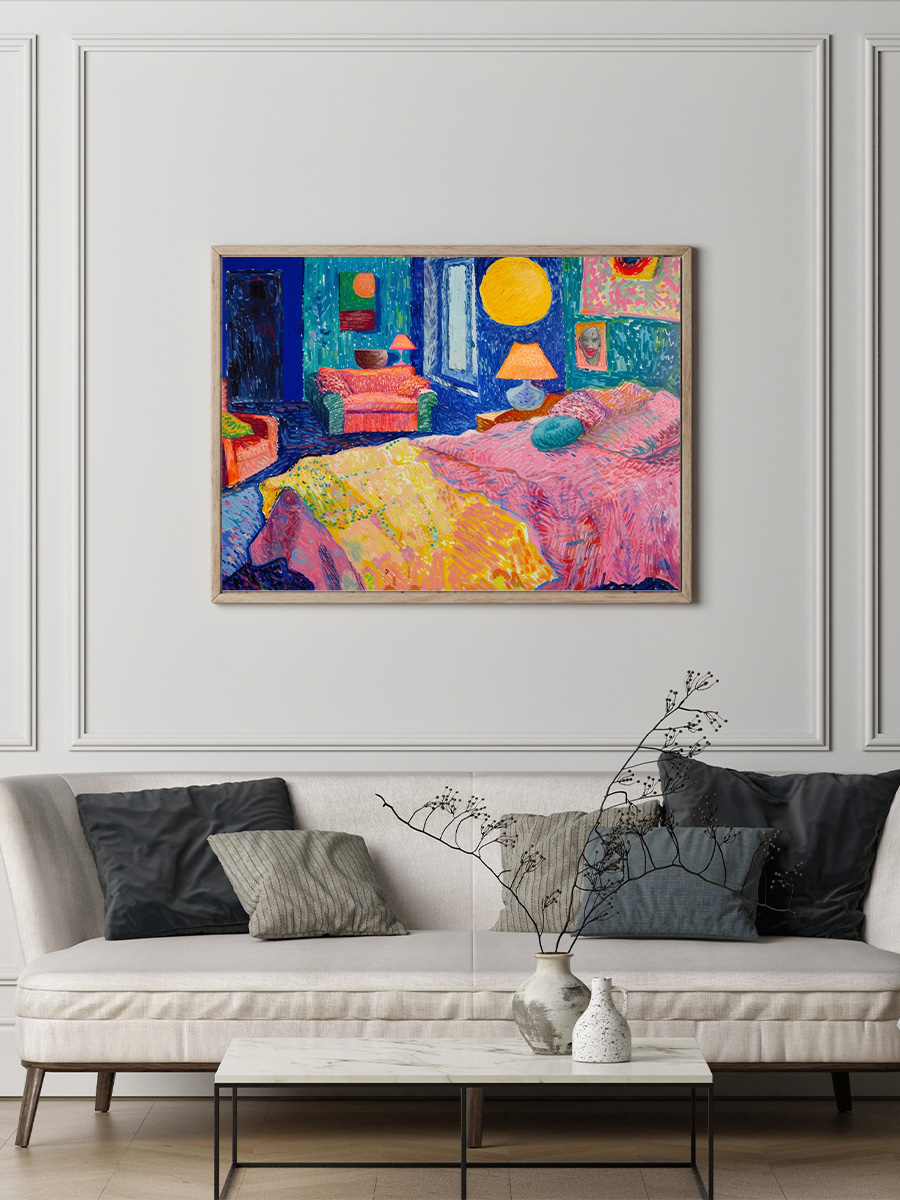Belebe deine Wände mit diesem farbenfrohen Kunstdruck, der jedes Zimmer in eine Galerie verwandeln wird. Ob auf echter Leinwand oder qualitativem Papier – dieses Kunstwerk wird in Deutschland gefertigt und versprüht Lebensfreude pur. Mit diesem exzentrischen und lebhaften Motiv wird deine Einrichtung zum Gesprächsthema und verleiht jedem Raum einen Hauch von Modernität und künstlerischem Flair. Für Individualisten, Designliebhaber und Farbenenthusiasten – das Must-Have für eine inspirierende Wohnatmosphäre. Bestelle jetzt und bringe Farbe in dein Leben!
