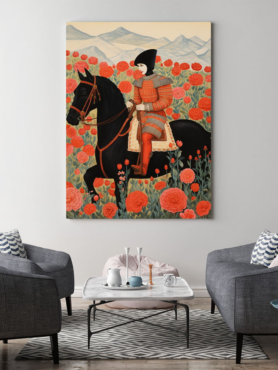 Tauche ein in die Welt mittelalterlicher Romantik mit diesem exquisiten Kunstdruck. Finde die perfekte Ergänzung für dein Zuhause oder Büro und erlebe, wie die Farbpracht roter Mohnblumen zusammen mit dem anmutigen Ritter auf seinem Pferd dein Ambiente bereichert. Unsere Werke sind die einzigartige Verbindung von Qualität und Design, speziell gefertigt in Deutschland und nur in unserem Sortiment zu finden. Entfache deine Fantasie und lass dich von einer Szene faszinieren, die von historischer Eleganz und floralem Zauber spricht.